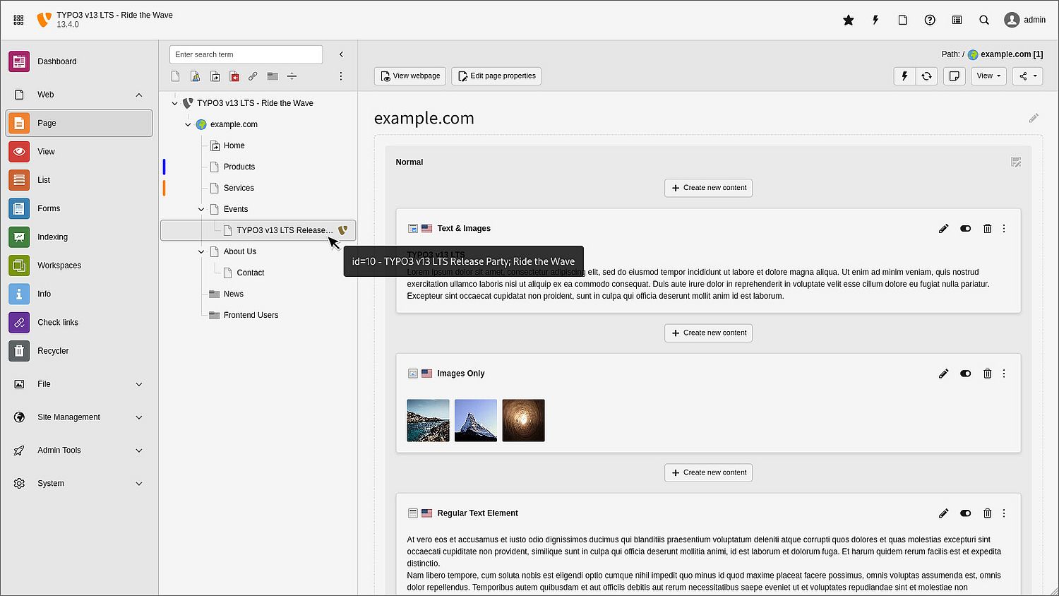 When you first log in to the backend of TYPO3 v13 LTS, you immediately notice the modernized design. Upon further exploration, it quickly becomes apparent that the administration interface has received numerous optimizations.